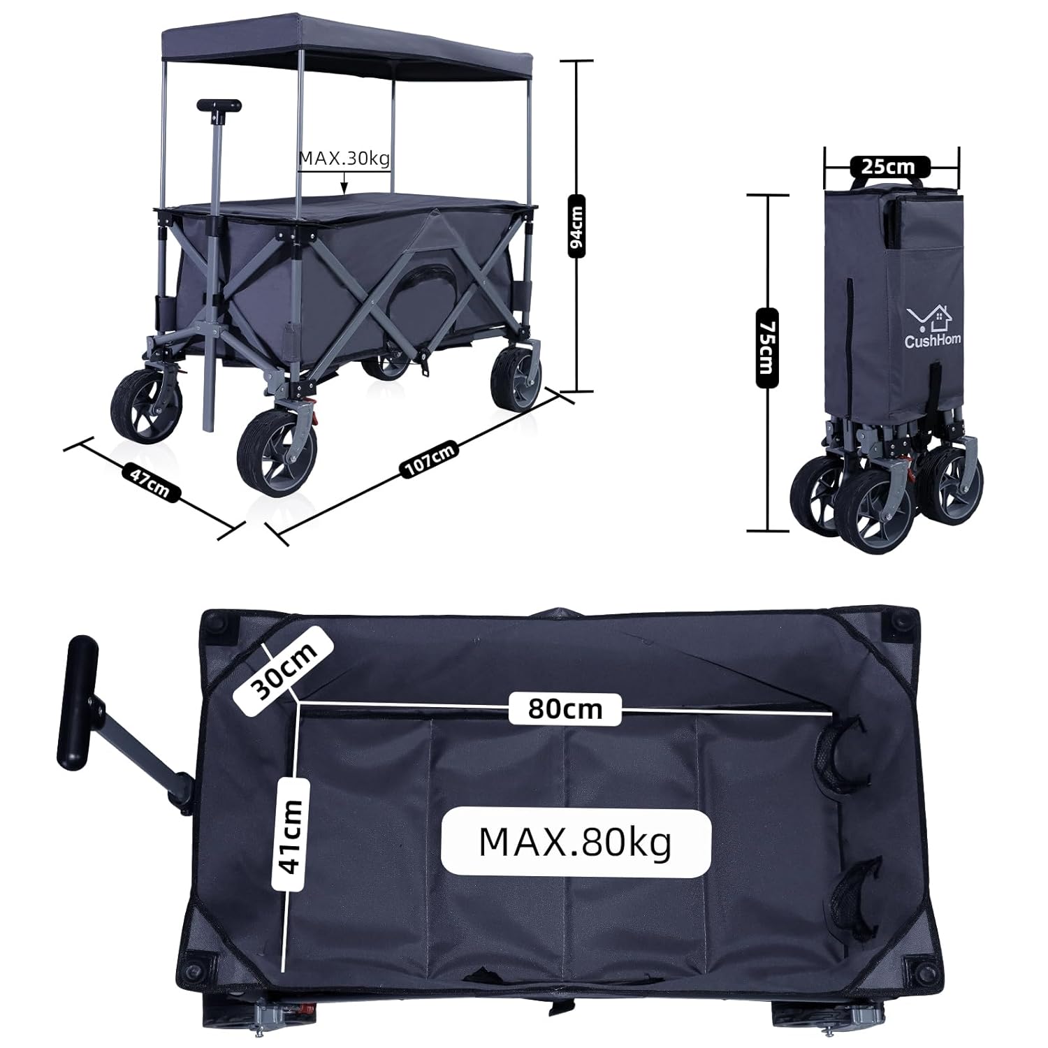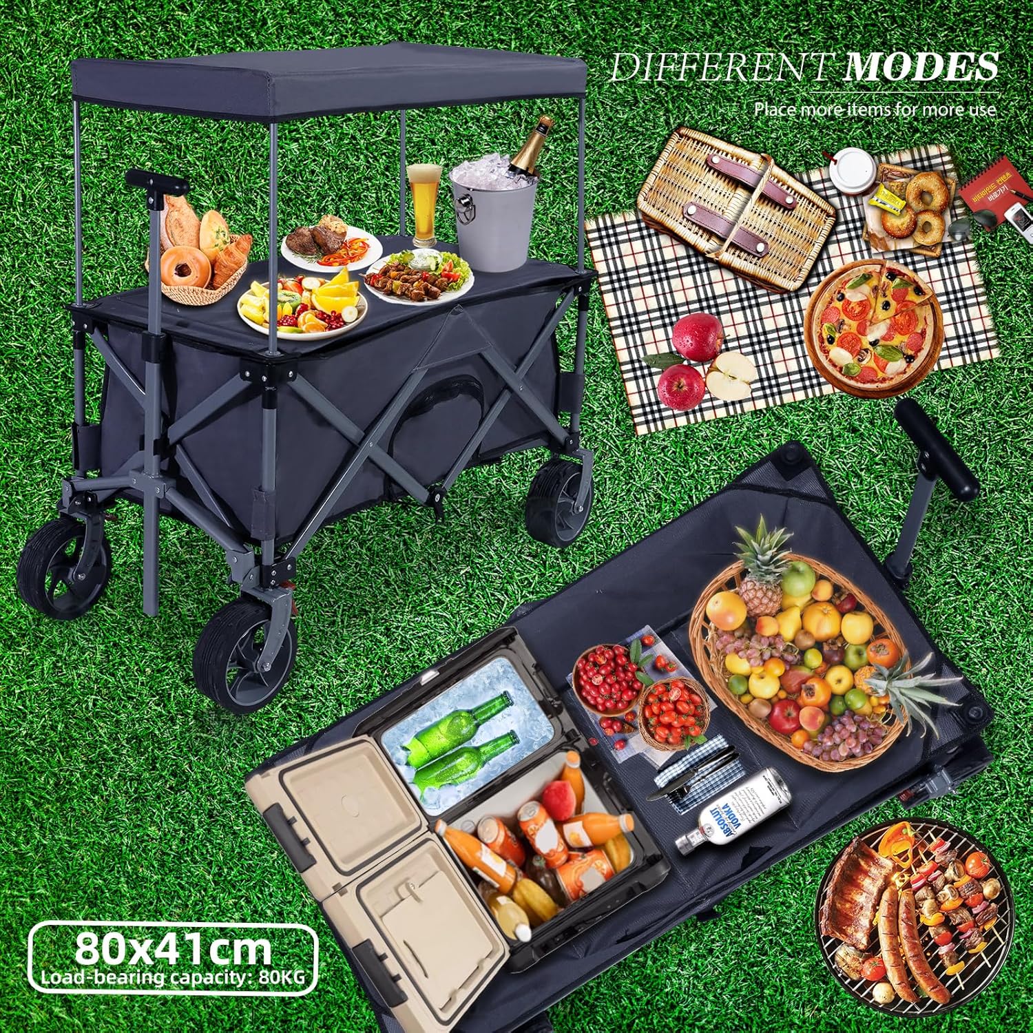 - Hohe Traglast von 80 kg: Geeignet für umfangreiche Familienladungen, von Einkäufen bis Campingausrüstung.
