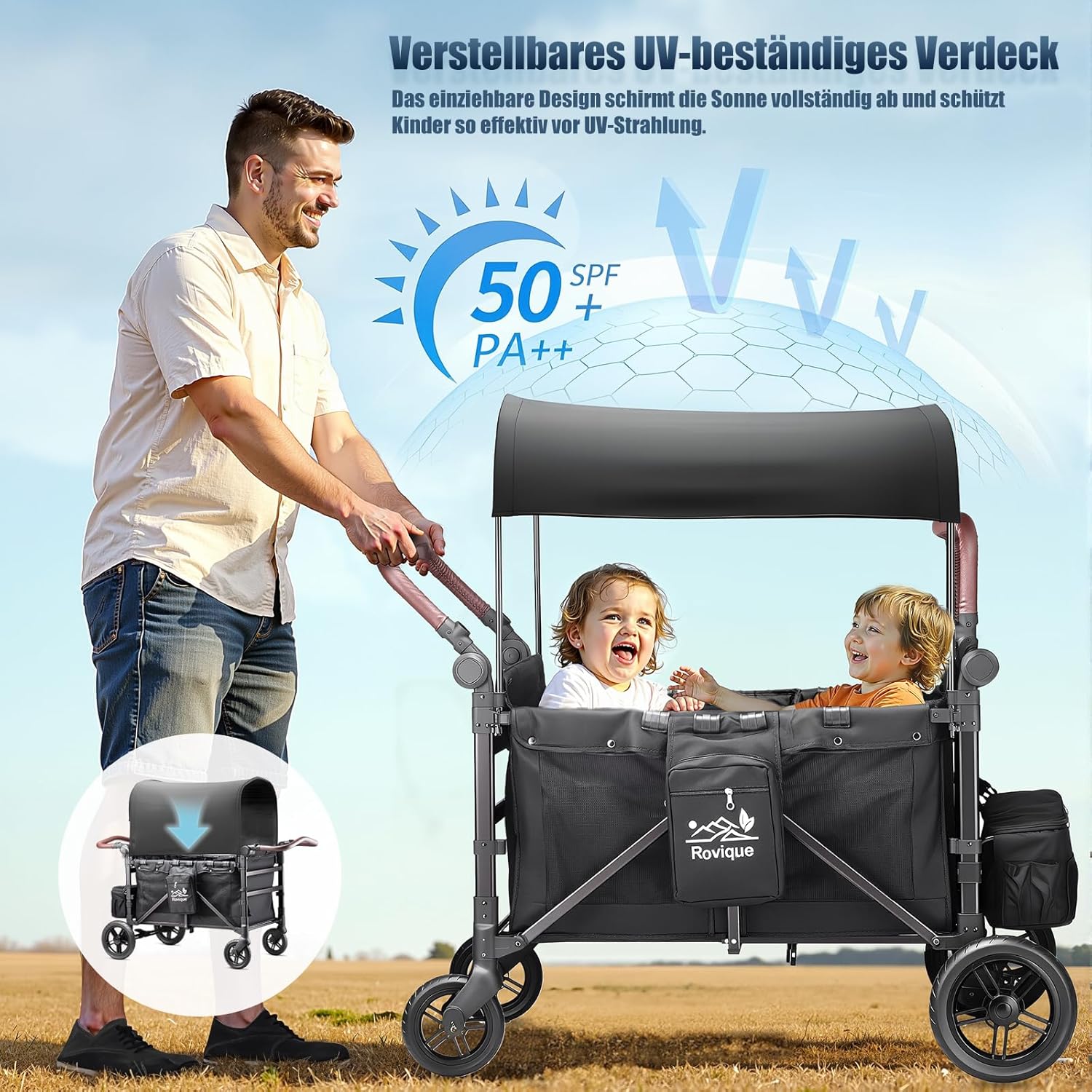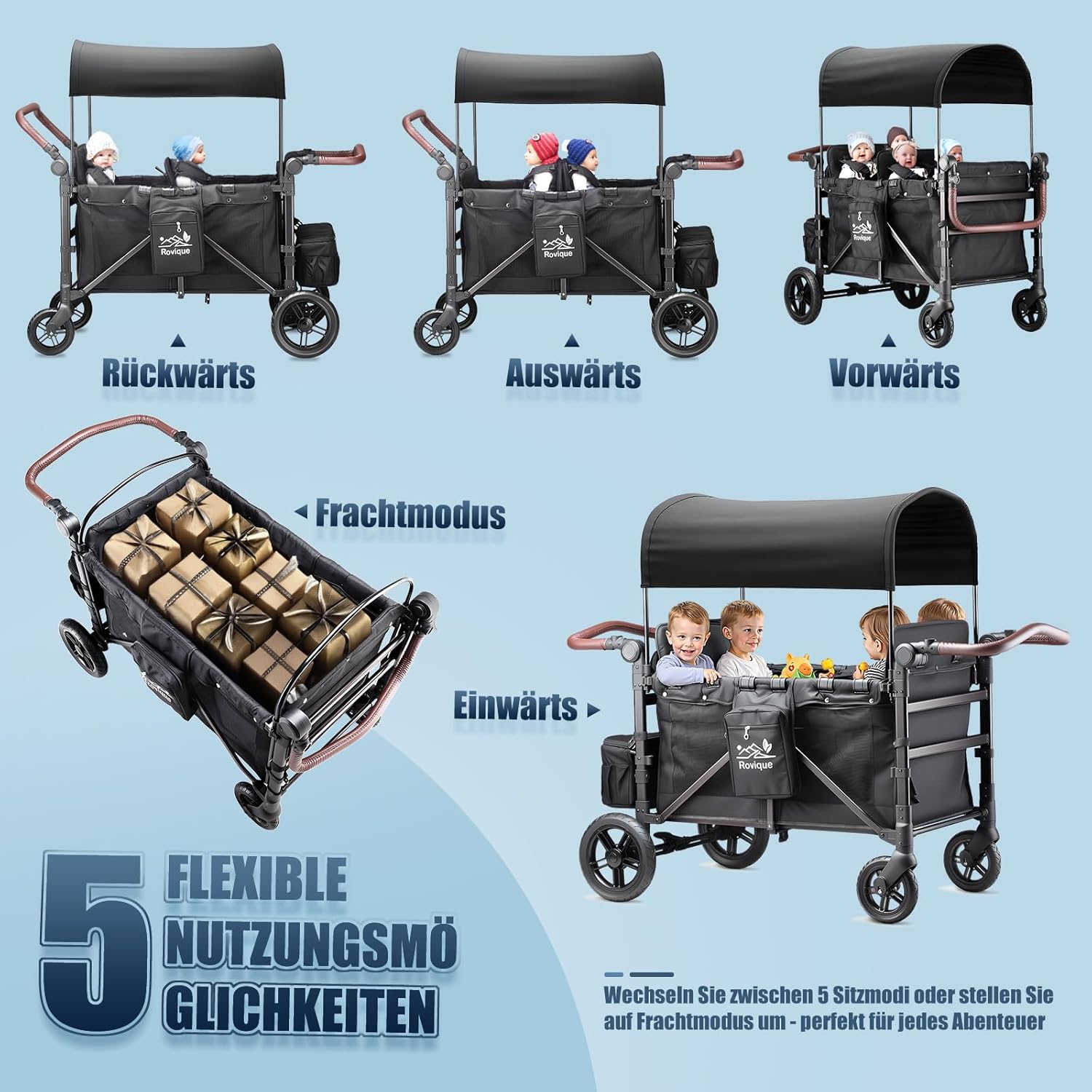Der ultimative Familienabenteuer: Faltbarer Kinderwagen für 4 Kinder mit Dach – RO-01Y