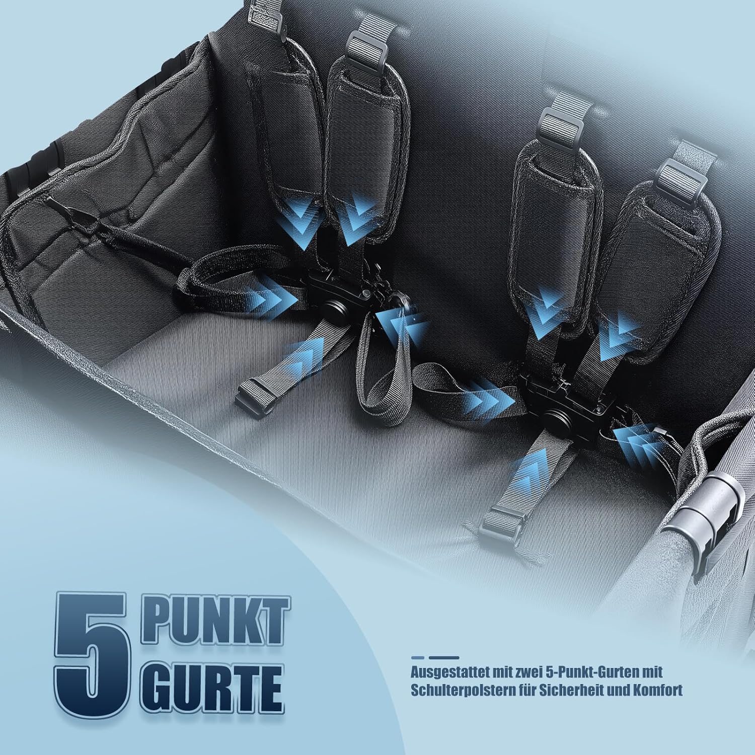 Sicherheit ist im RO-01Y kein Nachgedanke, sondern Kern der Konstruktion. Das 5-Punkte-Gurtsystem fixiert jedes Kind individuell und verhindert Verrutschen, selbst bei plötzlichen Bewegungen. Die Gurte sind weich gepolstert, um Reizungen zu vermeiden, und lassen sich kindgerecht anpassen – ein entscheidender Vorteil für Familien mit unterschiedlichen Größen. In Szenarien wie belebten Straßen bietet dies beruhigende Gewissheit, dass nichts passieren kann.