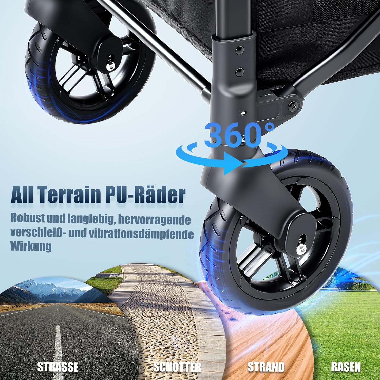 - Pannensichere PU-Räder mit 360-Grad-Drehung und Federung für reibungsloses Fahren auf verschiedenen Untergründen