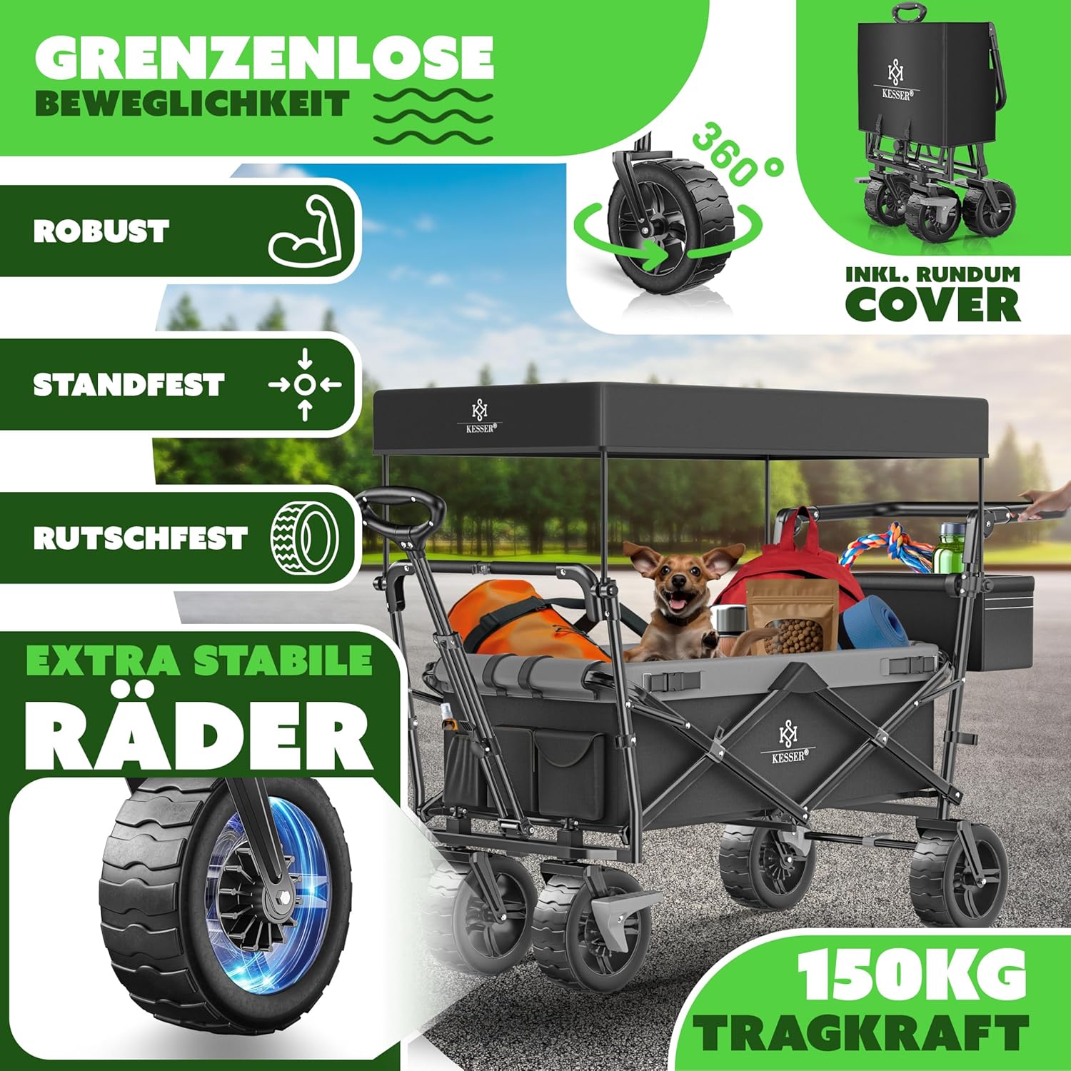 KESSER® GT9000: Der ultimative faltbare Transportwagen mit Dach – Perfekter Begleiter für Familie und Abenteuer
