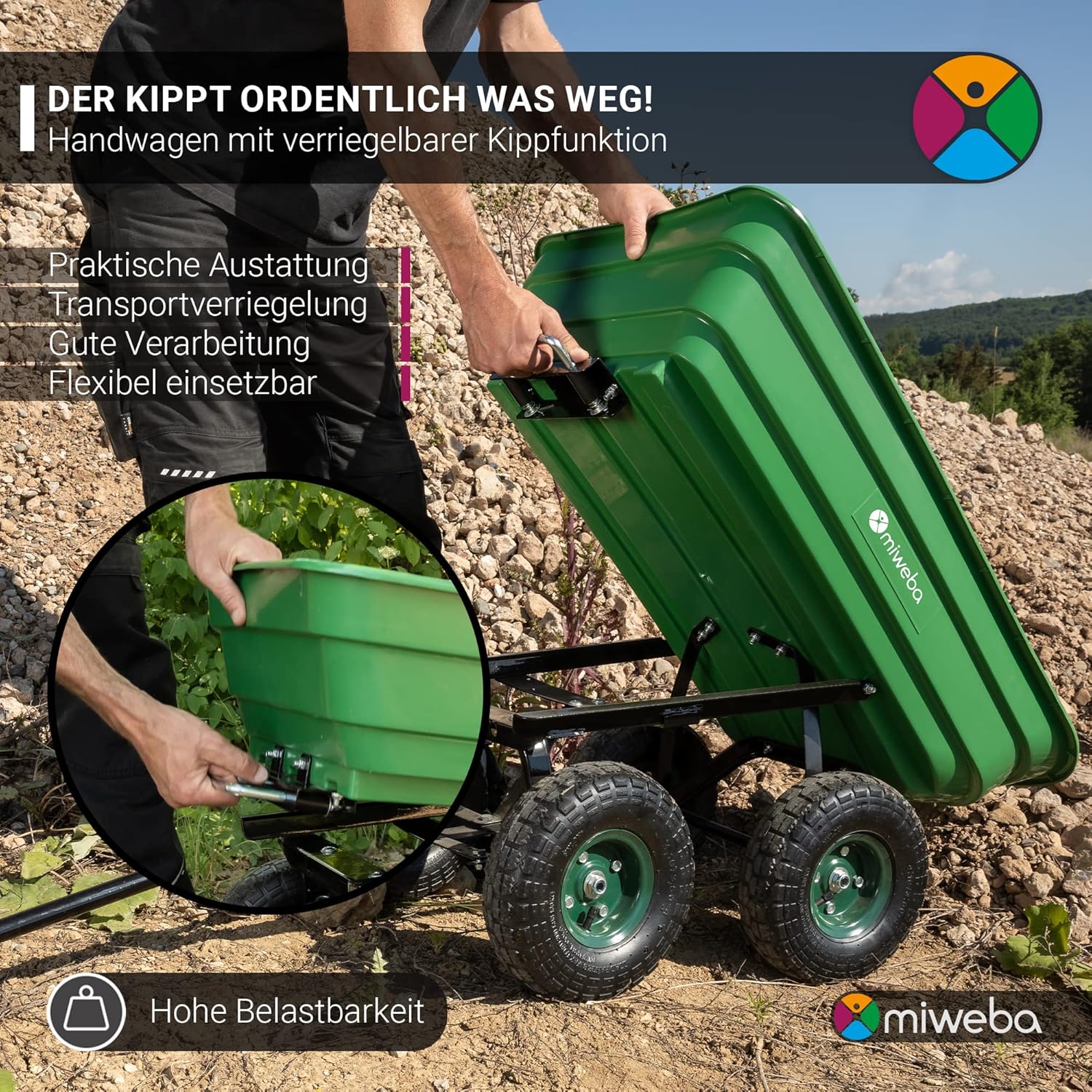 Miweba Handcart Dumper: Der vielseitige Kraftprotz für Ihren Alltag – 300 kg Tragkraft, 75 Liter Volumen und smarte Kippfunktion