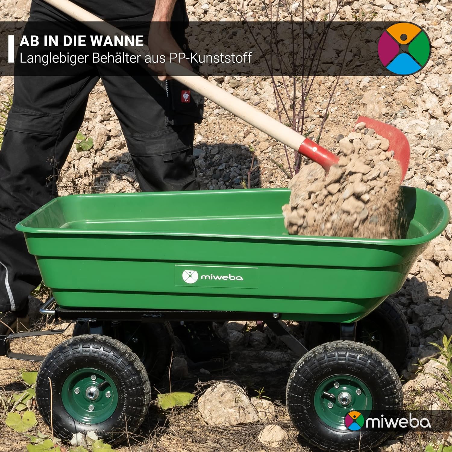 - 1 x Miweba Handcart Dumper (komplett montiert und einsatzbereit)