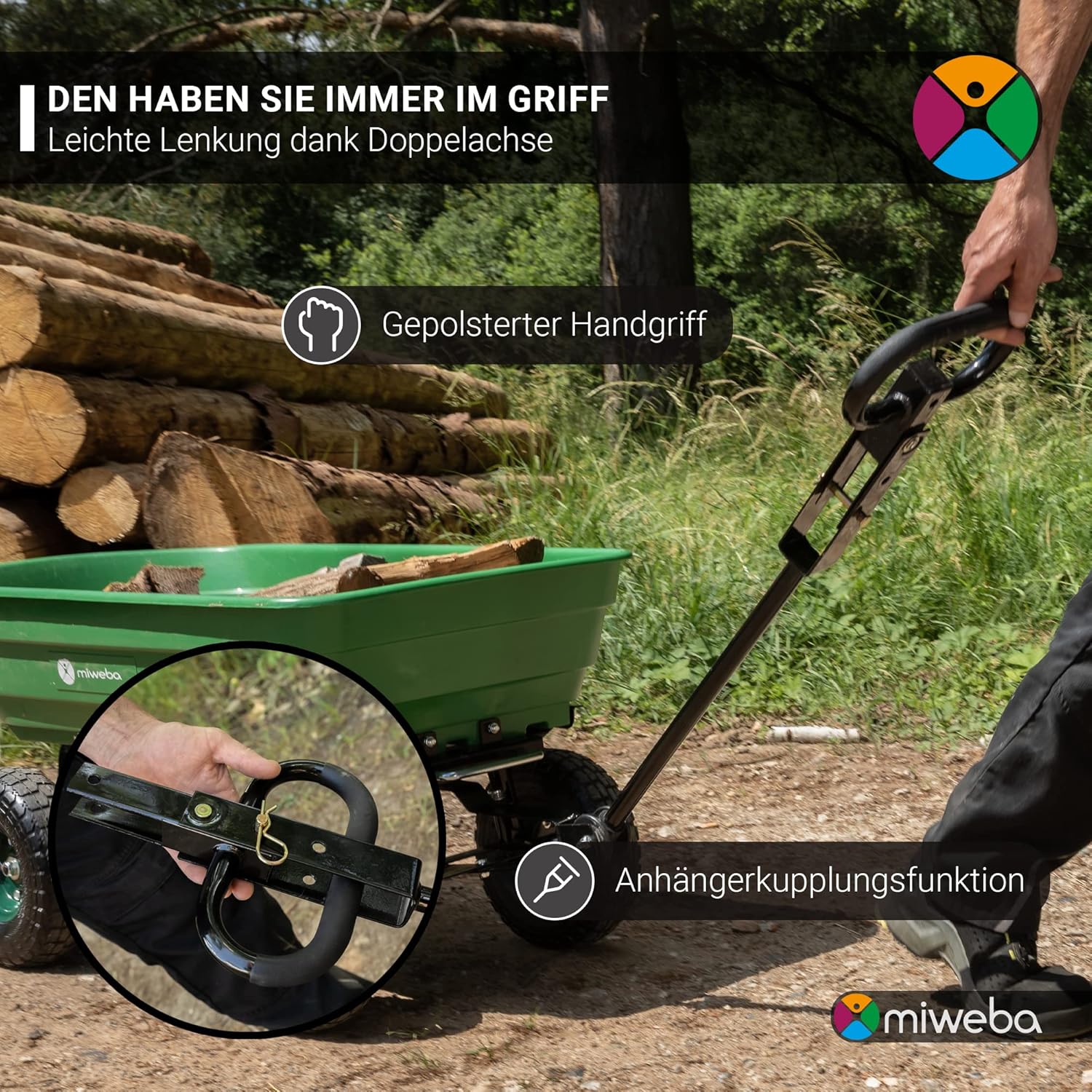 In familiären Kontexten fördert diese Wendigkeit Abenteuer: Kinder schieben den Karren spielerisch, und Eltern genießen die Kontrolle. Miweba hat auf ausgewogene Achsgeometrie gesetzt, um den Karren intuitiv zu machen – ein Feature, das Freiheit und Präzision schafft.