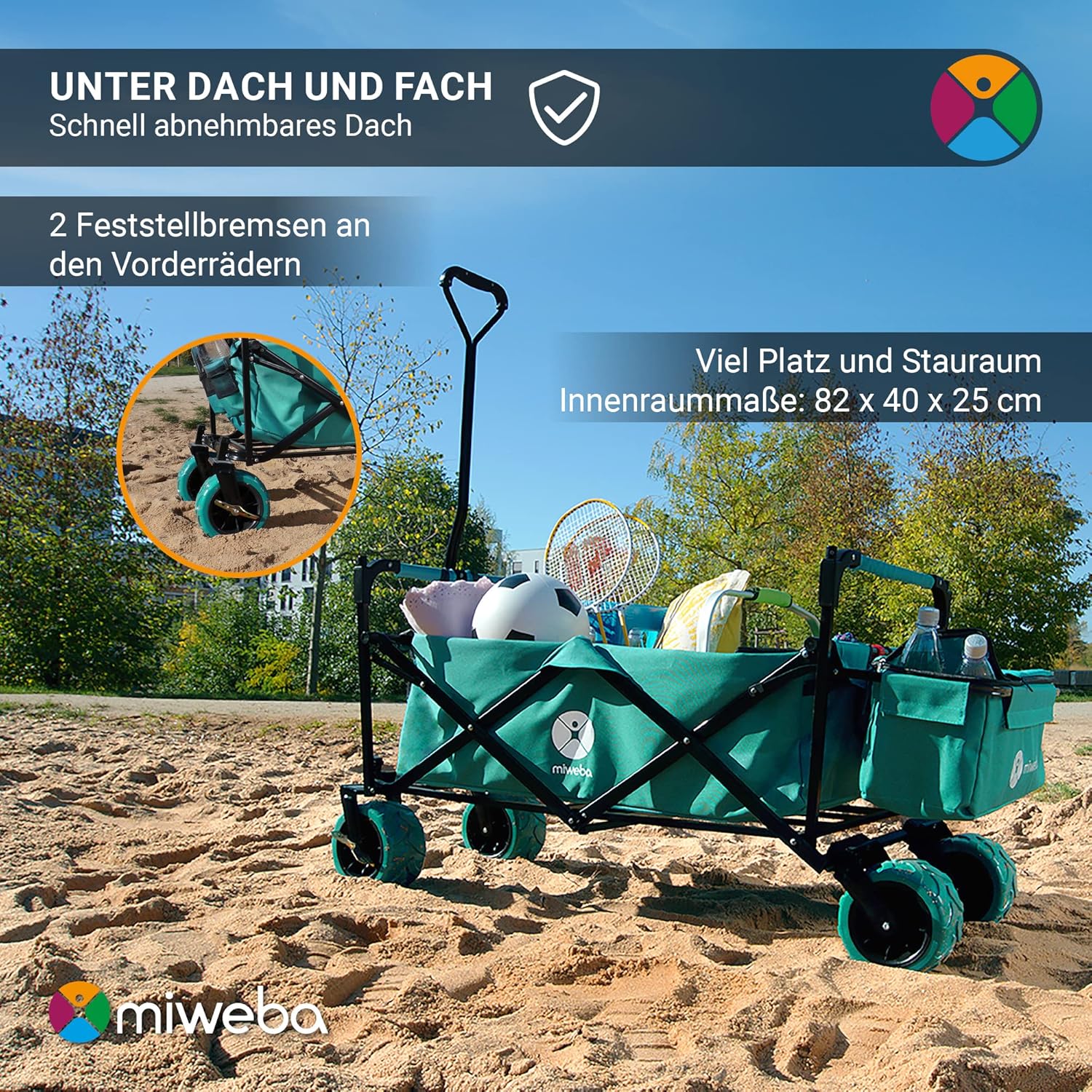 Die Miweba Klappbare Kinderkarre glänzt in vielfältigen Szenarien, die den dynamischen Alltag von Familien widerspiegeln. Nehmen Sie einen sonnigen Samstagmorgen: Die Karre wird zur Spielzeugkarre, beladen mit Bällen, Sandförmchen und Decken, während die Kinder lachend mitfahren und die Nachbarschaft erkunden. Ihre robuste Bauweise erlaubt es, dass sie nicht nur für kleine Passagiere dient, sondern auch als Schubkarre für Gartenerde oder Einkäufe fungiert – ideal für Eltern, die Multitasking meistern wollen. Stellen Sie sich vor, wie Sie mit der Familie zum lokalen Markt fahren; die Karre transportiert Frisches und Spielzeug gleichermaßen, ohne dass Sie sich bücken müssen.