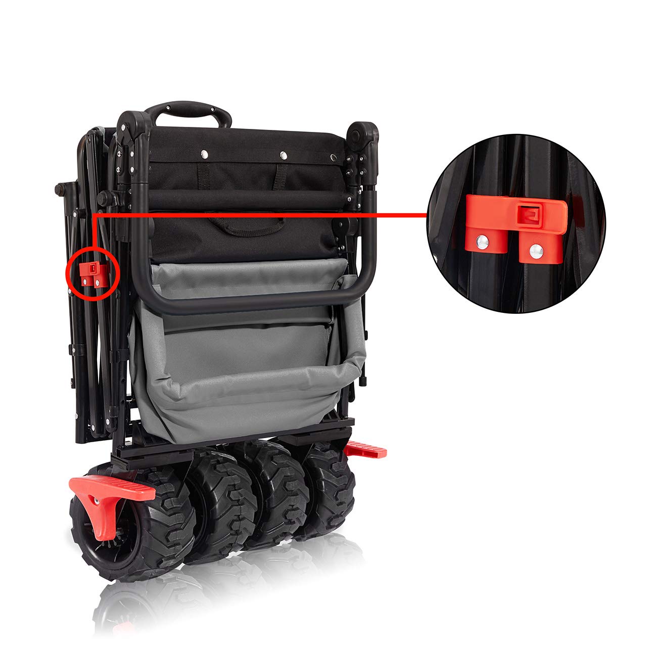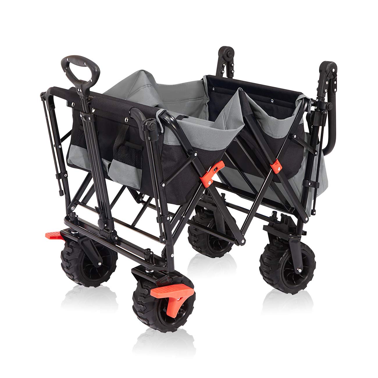 Die Kugellager in allen Rädern minimieren Reibung und verhindern plötzliche Rucke, was das Risiko von Umkippen senkt. Bei voller Belastung bleibt die Karre ausgeglichen, und die stabile Basis verhindert Verrutschen der Ladung. Emotionale Sicherheit entsteht hier: Stellen Sie sich vor, wie Sie beruhigt zusehen, wie die Familie picknickt, ohne Sorge um die Ausrüstung.