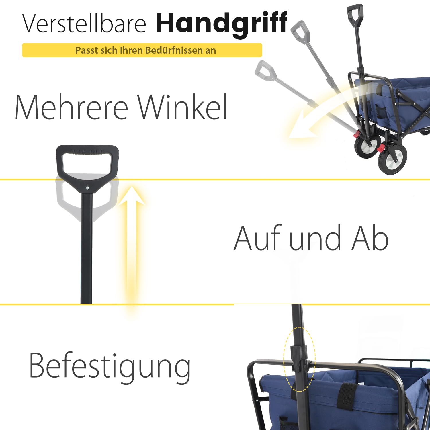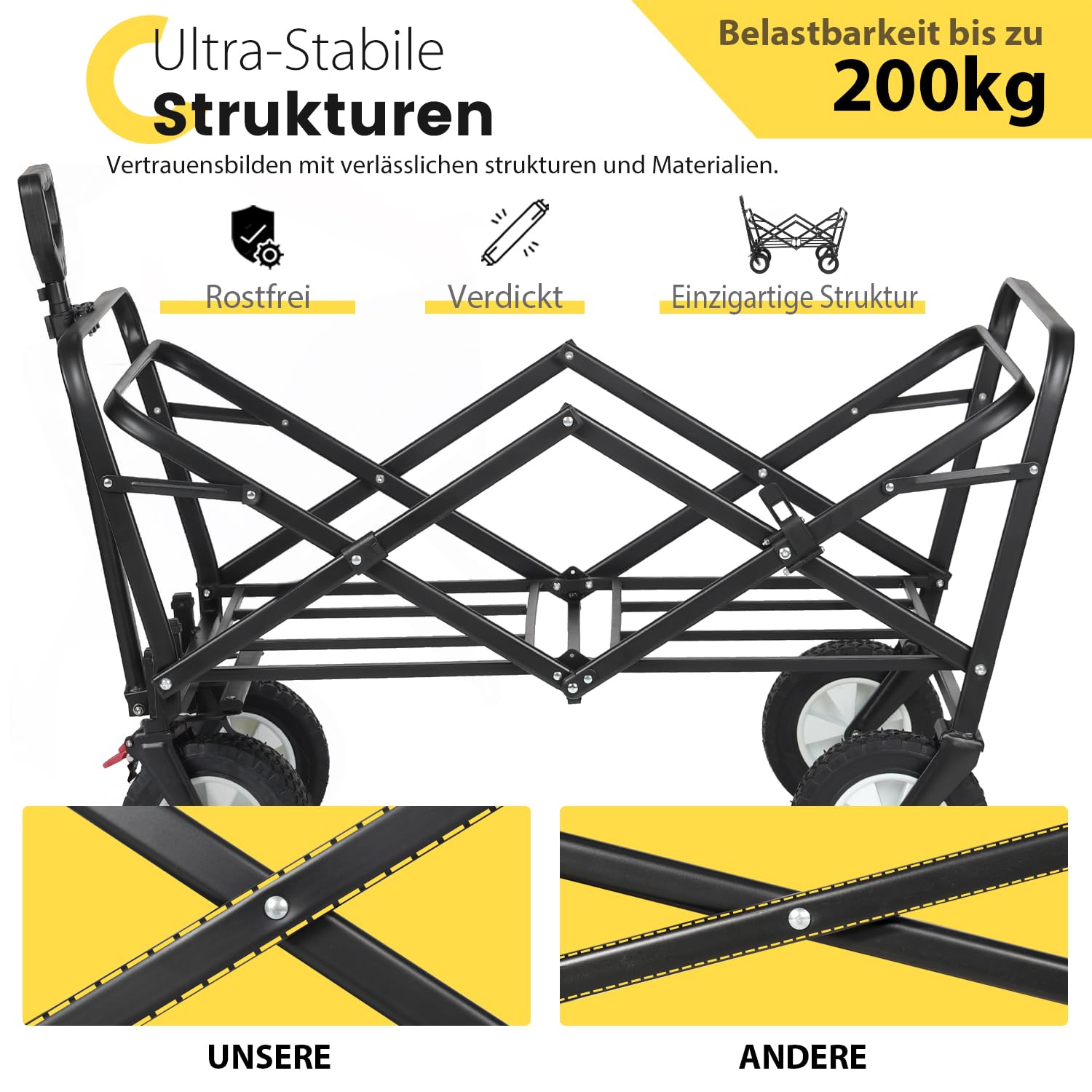 Toller Wagen, praktisch, schnell zusammen klappbar. 90 kg ausgehalten, gut zum ziehen und lenken !