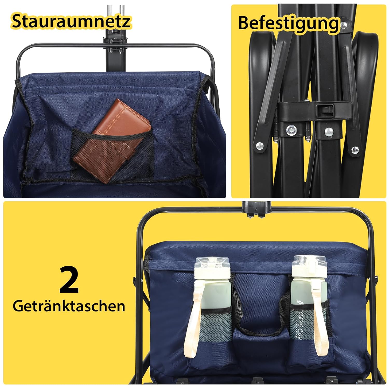 Die ergonomische Gestaltung berücksichtigt natürliche Bewegungen, mit einem weichen Polsterbezug am Griff, der Blasen verhindert. Bei längeren Wegen, wie vom Auto zum Campingplatz, spüren Sie, wie der Wagen mitläuft, anstatt zu zerren. Diese Features sind intentional: Sie transformieren Arbeit in Leichtigkeit, besonders für Ältere oder Eltern mit Kleinkindern, die Multitasking meistern müssen.